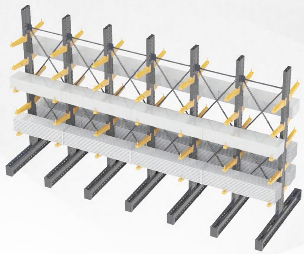 ● 根据结构形式可分为单面悬臂式货架和双面悬臂式货架。